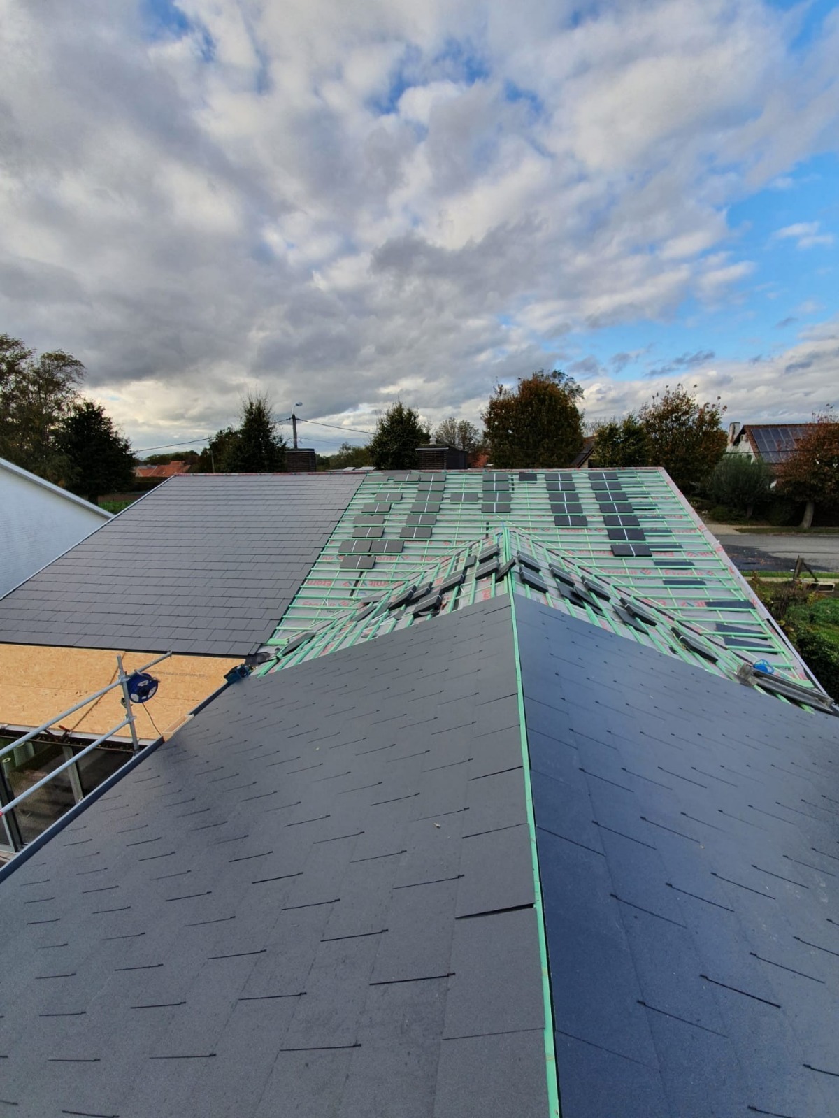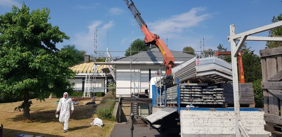 Cauwelier heeft niet enkel 50 jaar ervaring in dakrenovaties, we beschikken ook over opgeleide werkkrachten voor het saneren en renoveren van asbesthoudende leien. Leien met asbest mogen volgens de asbestwet namelijk niet meer gereinigd worden. De wetgeving zegt trouwens ook dat tegen het jaar 2040 al het asbesthoudend materiaal uit Vlaanderen moet verdwijnen.